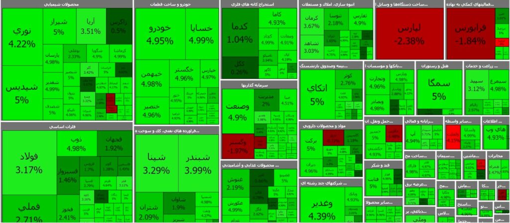 در این روز فولاد، کچاد، شپدیس، پارسان و فملی بیشترین تاثیر را در حرکت رو به جلوی شاخص به ثبت رساندند. این در حالی است که در فرابورس نیز کگهر، آریا و هرمز بیشترین تاثیر را در رشد روبه جلوی شاخص کل فرابورس به ثبت رساندند.