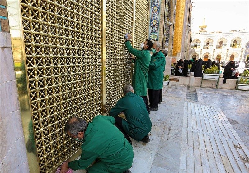 در آستانه شهادت شمس‌الشموس، پنجره فولاد حرم مطهر امام رضا(ع) تنظیف و شستشو شد.