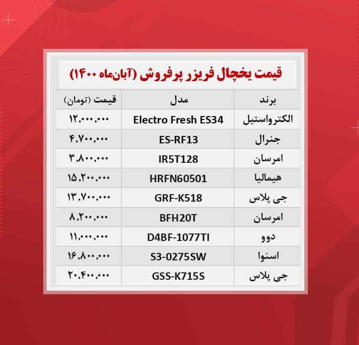 پرطرفدارترین یخچال های بازار چند؟ / (۱۴۰۰/۸/۲)